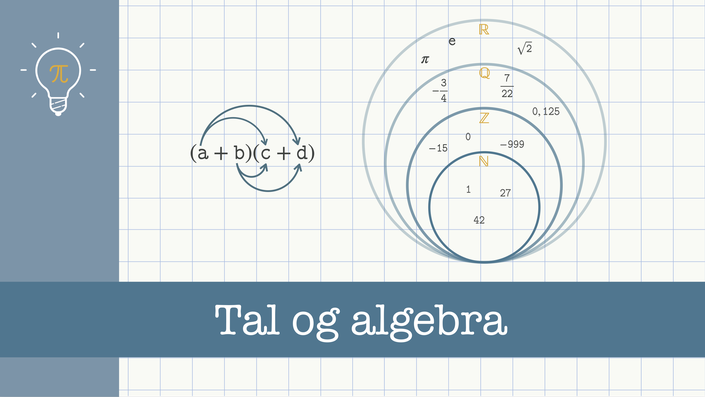 Lær om tal og tallinjen, regningsarternes hierarki, regning med brøker, kvadratsætningerne, potenser og rødder oglogaritmer,